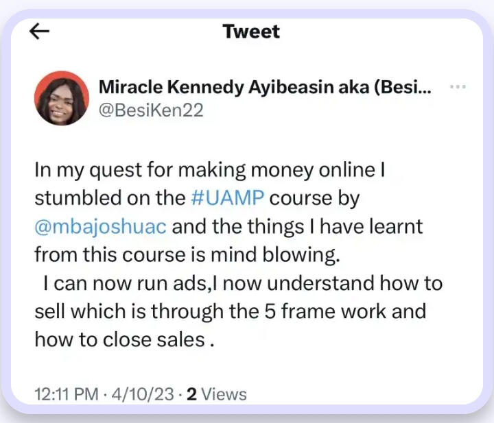 Get the UAMP through my link and I will give you ₦10,000 back. This will not only allow you to save some of the ₦30,000 ($50) fee, it will also provide me the funds I need to reach out to less privileged public secondary school students (that's where my own affiliate profits goes).
