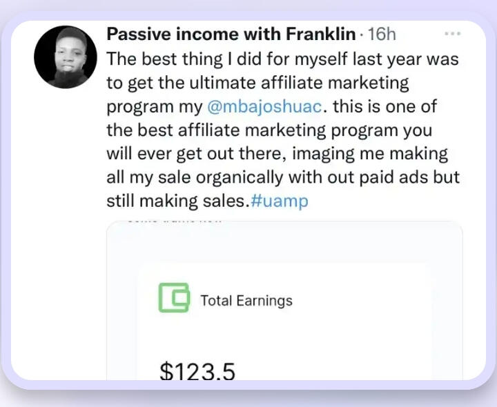 UAMP means Ultimate Affiliate Marketing Program. Anything for affiliate marketing business success you can't find here is not anywhere else, this is not exaggeratinon nor hyping. The results are massive!