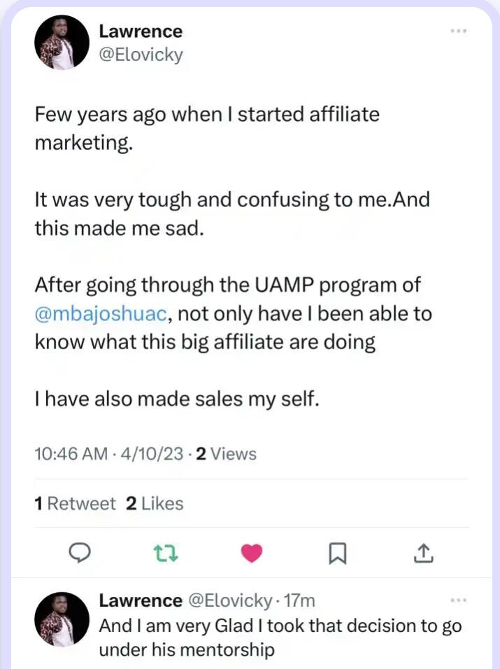 Get the UAMP through my link and I will give you ₦10,000 back. This will not only allow you to save some of the ₦30,000 ($50) fee, it will also provide me the funds I need to reach out to less privileged public secondary school students (that's where my own affiliate profits goes).